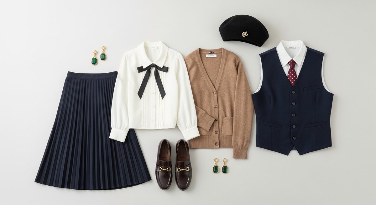 優秀な概念コーデアイテムとは、例えば「ある日はオクタヴィネル概念として着られるけれど、別の日は普通のオフィスカジュアルとしても使える」ような服です。特にカーディガンやスラックス、ローファーなどは、合わせる小物次第で表情がガラリと変わるため、非常に汎用性が高いと言えます。